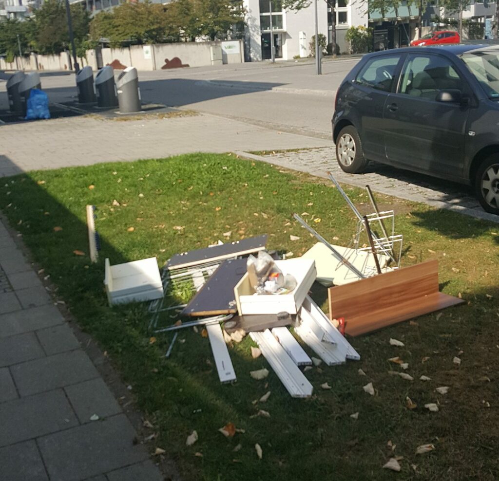 Die Ablage von Sperrmüll im öffentlichen Raum (Möbel, Elektrogeräte etc.) ist illegal und wird mit einem hohen Bußgeld bestraft. https://www.bussgeldkatalog.org/umwelt-muell/#bay