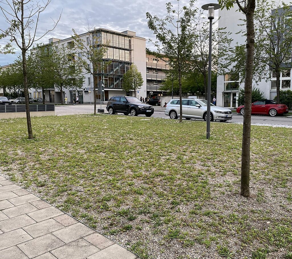 Ich wohne in einem Münchner Neubauviertel, der Messestadt Riem. Dort gibt es einen ziemlich großen, häßlichen Platz vor einem Einkaufszentrum. Seine Spitznamen reichen von „Platz der Leere“ bis „Platz des Grauens“.
